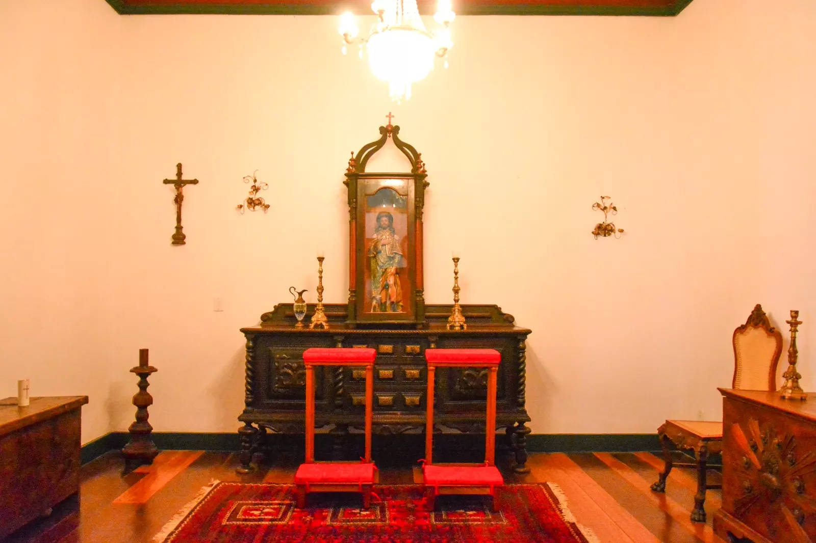 De proporções elegantes, com cobertura em telhas de barro capa e canal, tem cunhais bem marcados e generosos beirais em madeira pintada; vãos de janelas com vergas retas e folhas de guilhotina em caixilhos com vidro, dispostas uniformemente; acesso através de uma escada em pedra, com patamar protegido por delicada cobertura metálica arrematada por lambrequim. Piso em assoalho sobre barrotes de madeira; alvenarias do porão em pedra e do pavimento térreo originalmente em pau-a-pique, à exceção de uma parede em pedra nesse pavimento.