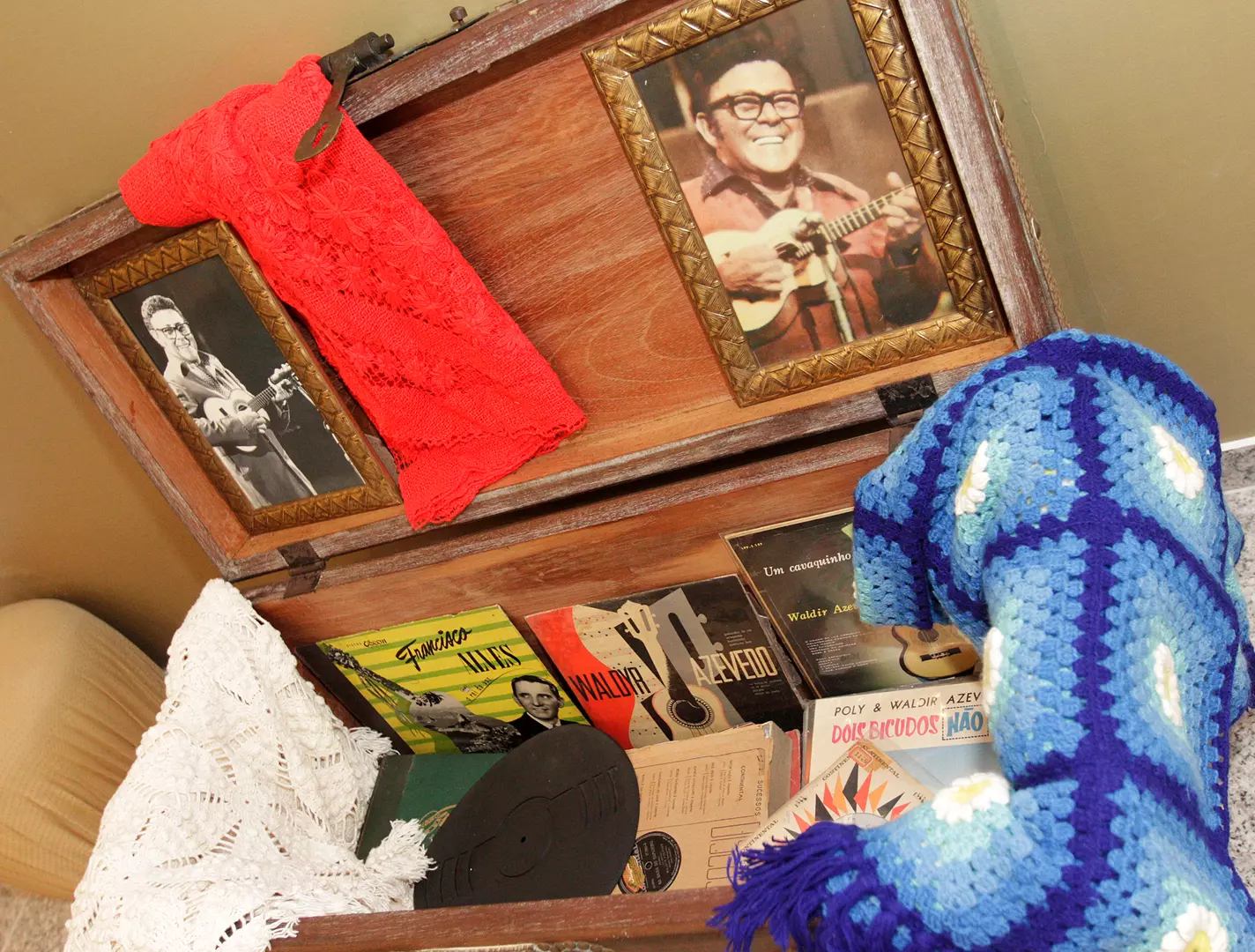 O acervo é uma preciosidade. Além de partituras e fotografias, há instrumentos musicais (inclusive um cavaquinho), uma vitrola, móveis, diplomas, cartas e outros objetos de Waldir Azevedo. Está ali também o famoso quadro ”Minhas mãos, meu cavaquinho” da artista Cléa Maria Novelino.