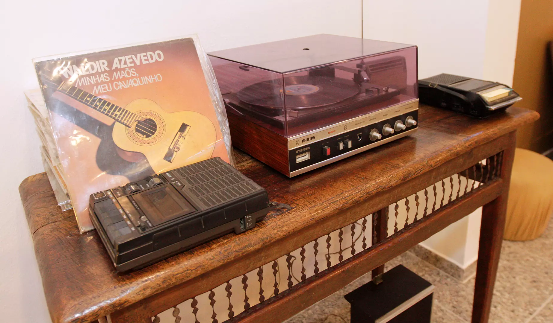 O acervo é uma preciosidade. Além de partituras e fotografias, há instrumentos musicais (inclusive um cavaquinho), uma vitrola, móveis, diplomas, cartas e outros objetos de Waldir Azevedo. Está ali também o famoso quadro ”Minhas mãos, meu cavaquinho” da artista Cléa Maria Novelino.