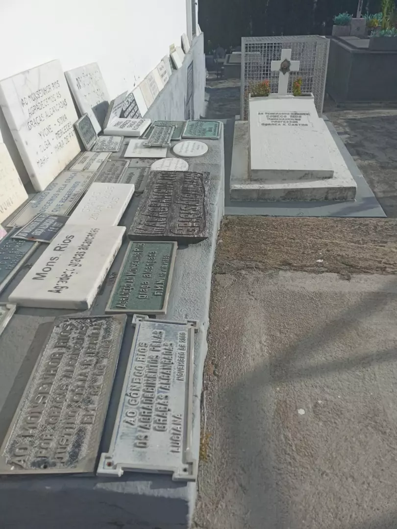 Próximo ao túmulo, há uma série de placas de agradecimento a graças atribuídas por fiéis ao Monsenhor Rios. Em minha primeira visita ao cemitério, em 2 de novembro de 2018, não encontrei a flor desabrochada, mas conheci algumas pessoas agradecidas por supostos milagres “Pedi pela minha saúde em 1997 e fui atendida”, contou Marília dos Santos, que mora no Espírito Santo e visita Vassouras todo feriado de finados para agradecer ao Monsenhor diante de seu túmulo.